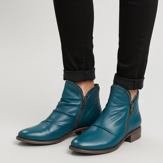 Women's Leather Ankle Boots - Handmade Flat Zipper Shoes