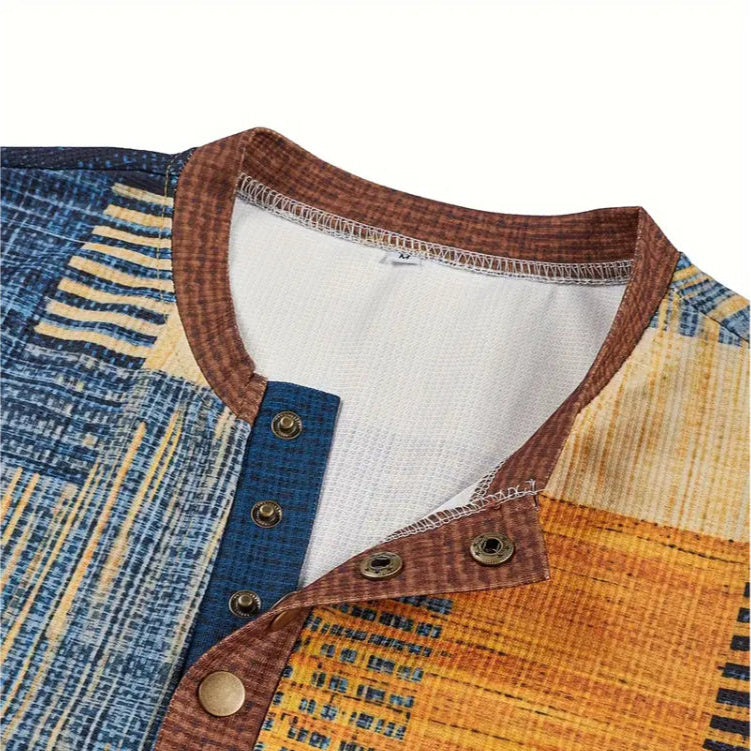 Men’s casual long sleeve shirts with a slim fit are the perfect blend of style and comfort. Designed with a unique patterned fabric and buttoned Henley neckline, this piece adds a touch of modern character to any outfit. Whether for daily wear, relaxed weekends, or smart casual settings, it brings both versatility and confidence.