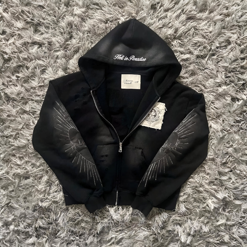 Oversized graphic hoodie with long sleeves and a relaxed pullover fit offers warmth and edgy style for everyday wear. The soft fabric and dropped shoulder shape create a comfortable feel, while the bold print across the chest and sleeves adds a strong visual statement. Ideal for casual outfits, street fashion and layering in colder seasons without restricting movement.